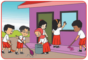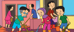 3. Udin dan keluarga melakukan kerja bakti di rumah.