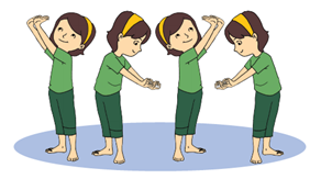 - Kedua lengan agak keatas, di atas telinga dengan ibu jari saling berkaitan.