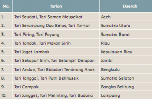 1. Sebutkan 5 macam nama tarian beserta daerah asalnya !